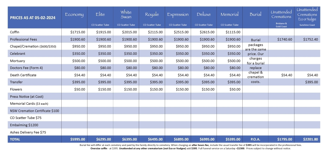 - Our funeral directors shall provide the client with a detailed itemised final account based on the quoted amount.